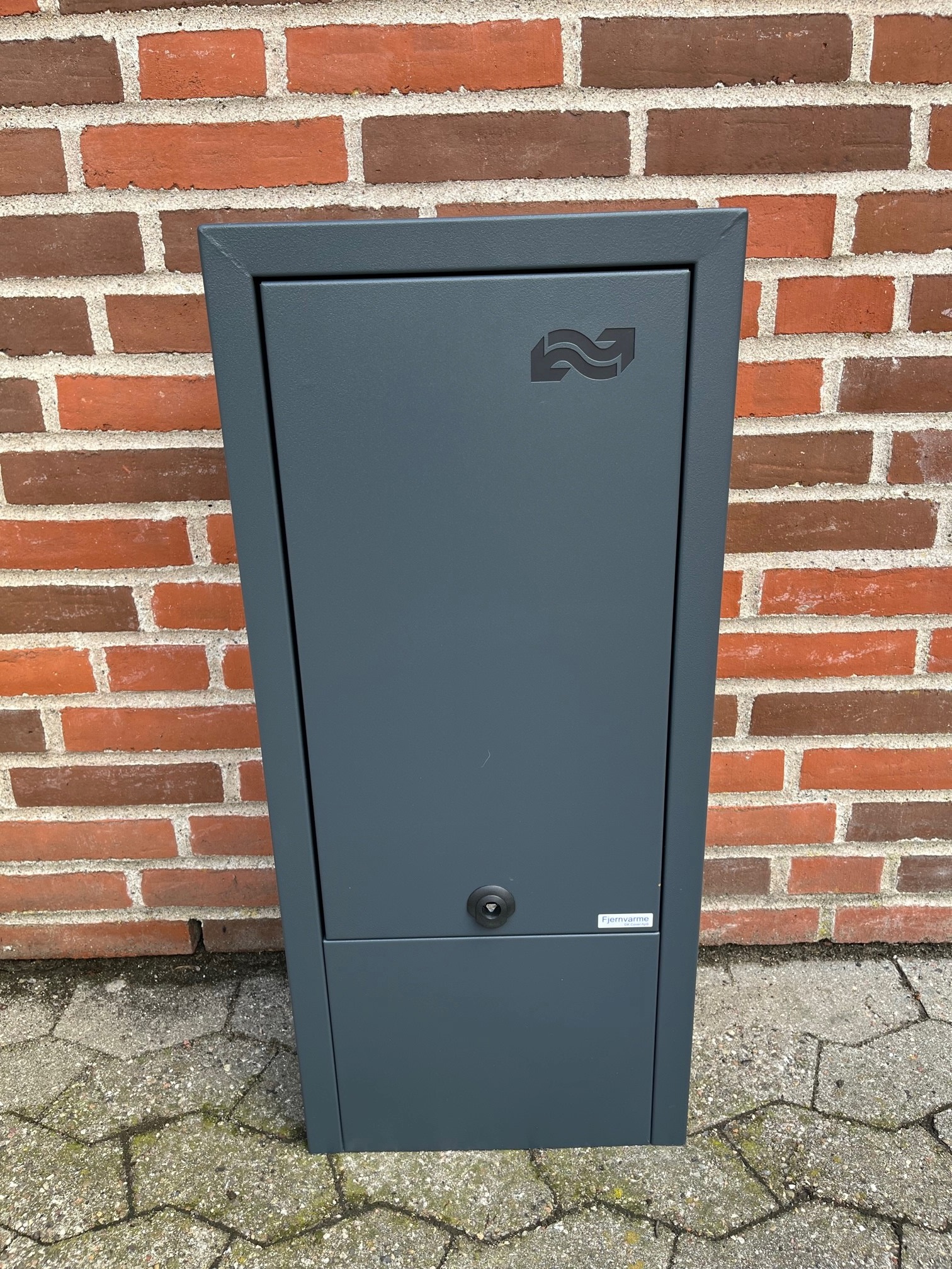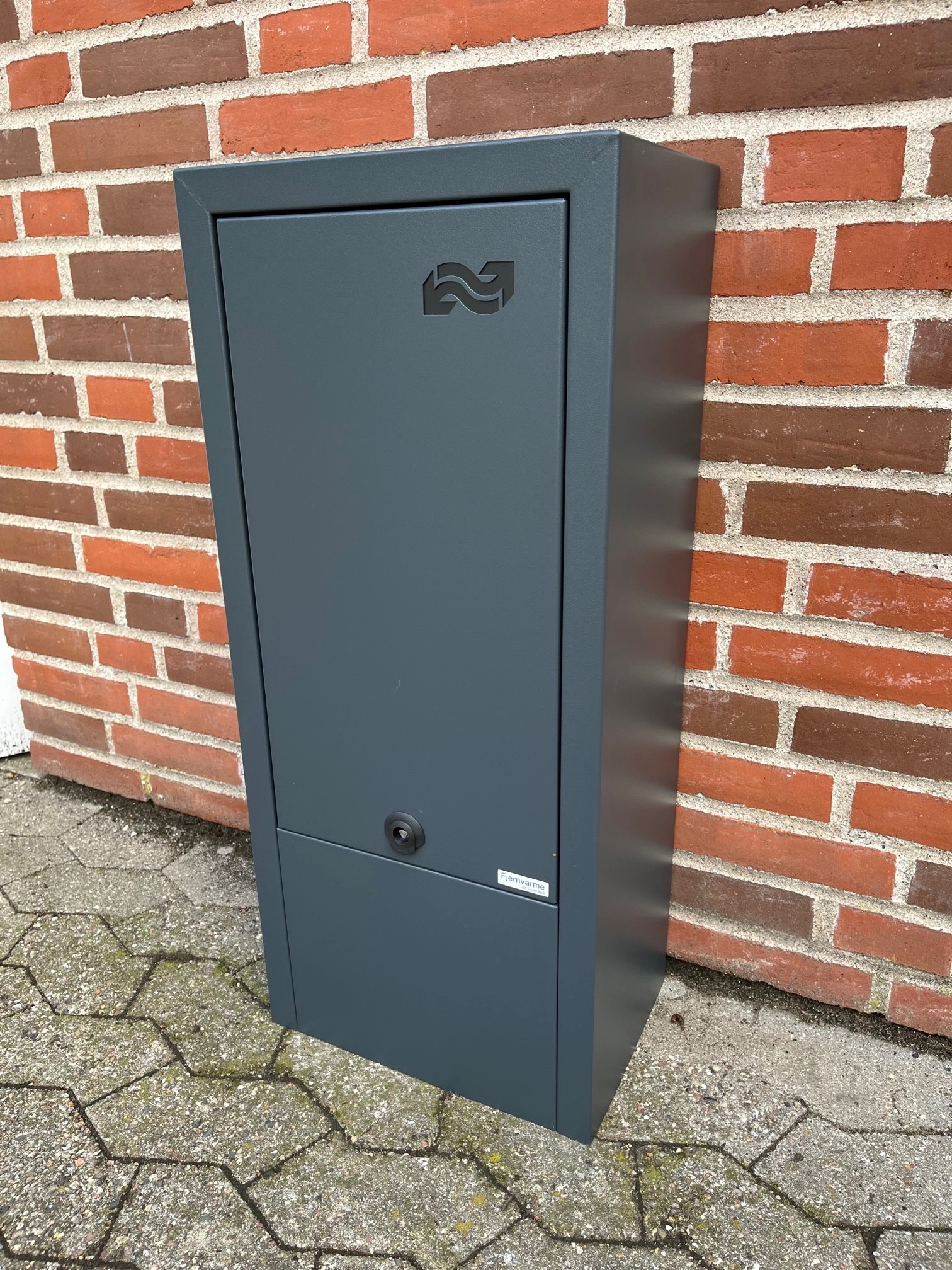 Skabene monteres på udvendig husmur, som vist på billederne.