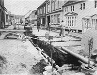 Nu fortsatte arbejdet med gadeledningsnettet for fuld fart, og det første spadestik til fjernvarmecentralen blev foretaget den næste dag d. 13/8.
